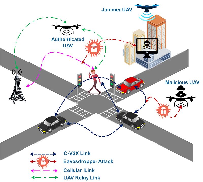 Security has not been at the foundation of wireless communications technology development but is becoming increasingly important. By taking into consideration the advantages of UAV technology, including but not limited to their low deployment cost, high maneuverability, strong line of sight (LOS) radio communications links with ground nodes, and ability to operate in dangerous or hostile environments have motivated my research of integrating UAV into terrestrial communication networks for enhancing next-generation wireless network security. I have developed a framework and various algorithms based on the network optimization and learning theory that leverage the 3D movement, power control, and beamforming techniques adopted by the UAVs to enhance the fundamental secrecy performance limits of terrestrial wireless communication under active and passive eavesdropping attacks. The secrecy performance is evaluated through the secrecy rate metric, which is modeled with trajectory, power, scalability, and others. constraints related to the deployment environment, attack type and quantity, and UAVnode capabilities as a non-convex optimization problem with a non-smooth objective function. To address this problem, firstly, an iterative algorithm derived from the block coordinate descent strategy is proposed to optimize the transmission power and UAV trajectory for enhancing the secrecy rate of multiple ground users under multiple eavesdropping attacks to address the search gap of scalability. Motivated by the promising results accomplished, I went one step further to ask the following questions: (1) Can machine learning algorithms be applied to further reduce the complexity and convergence time of the proposed UAV-assisted securer terrestrial wireless networks? (2) Is it possible to enhance the secrecy rate of the network without having channel state information (CSI) of the eavesdroppers to address the research gap in analyzing the practicality of mitigation techniques against eavesdropping attacks? My recent research has demonstrated practical solutions to these research questions. For future research plans regarding this research, I am interested in investigating more scenarios for optimizing the design of the UAV trajectory under a wide range of realistic constraints, such as collision avoidance, and no-fly zone restrictions. Moreover, I am motivated to research the capabilities of the UAV in the 3D space to enable novel end-to-end solutions for enabling wider use of dynamic spectrum-sharing policies. In addition, Theoretical and practical problems at the physical (PHY), medium access control (MAC), and higher layers will be investigated to enhance the fundamentals of communication support for aerial nodes in air corridors while taking into consideration limited UAV energy resources.
